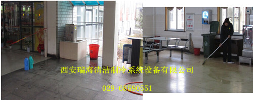 问题:瓷砖或石材地面,地面经常有水渍,污渍,现有方式难以满足高峰期的地面干净清洁